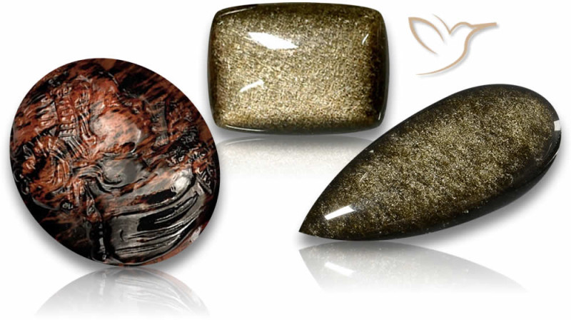 Цветовая гамма обсидианов достаточно обширна, она включает в себя: черные, серые, желтые, коричневые и красные цвета. Коричневые с черными включениями камни называются — персианами, а серо-белые — «снежными» обсидианами. Самый редкий и ценный — радужный обсидиан, своими цветовыми переливами напоминающий каплю нефти.