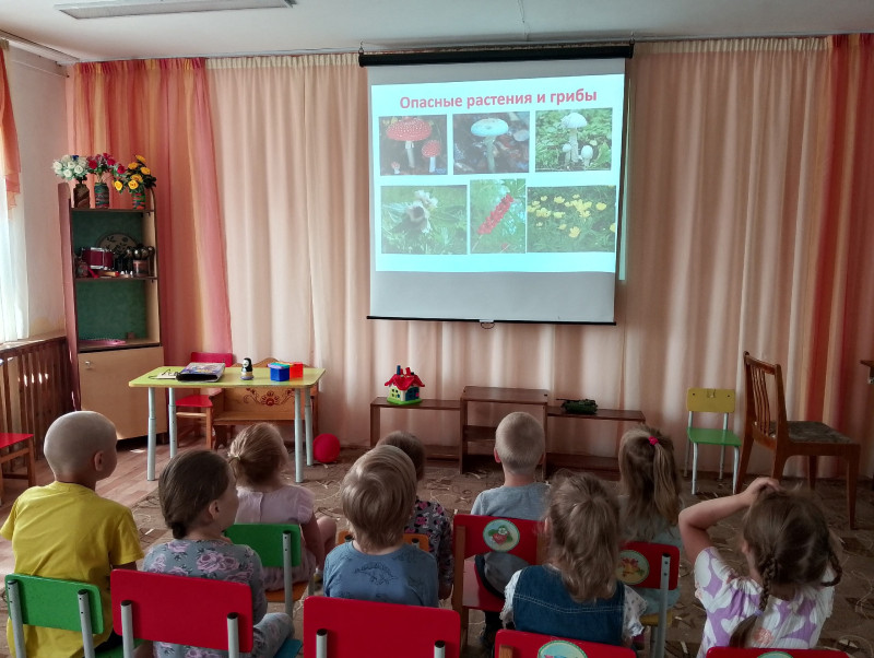 Из беседы с библиотекарем дети узнали о том, какие растения и грибы могут представлять опасность, например, вызвать отравление или аллергические реакции. Были показаны яркие и наглядные картинки с изображением как опасных, так и безопасных растений и грибов, чтобы дети могли лучше запомнить информацию. Дошкольники узнали , что не все растения и грибы безопасны. А главное правило поведения на природе для малышей: не трогать незнакомые растения и грибы, не пробовать их на вкус и не приносить в детский сад.