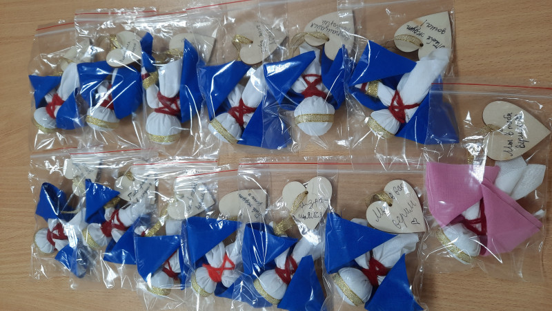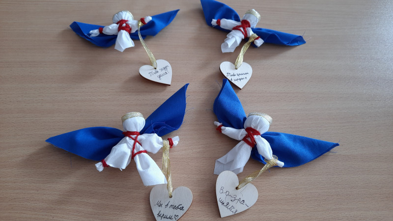 В этот раз их было сделано две. Одну ребята забрали домой, а вторую с добрыми пожеланиями на сердечках мы изготовили для наших воинов, находящихся в зоне специальной военной операции. Куклы, бережно упакованные в мешочки, будут переданы представителям общественно-патриотической организации «ZOV Миасса» для отправки вместе с гуманитарным грузом на передовую.