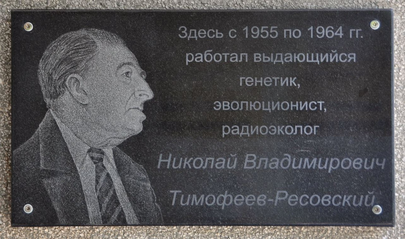 Память о Тимофееве-Ресовском увековечена и в Челябинске. В самом центре города есть мемориальная доска. Она установлена в октябре 1993 года по инициативе Центра историко-культурного наследия города и размещена на жилом доме по адресу: улица Цвиллинга, дом 36. На доске надпись: «Здесь часто бывал в 60-е годы работавший в Миассово выдающийся биолог, один из основоположников радиационной генетики, Николай Владимирович Тимофеев-Ресовский (Зубр) (1900–1981)».