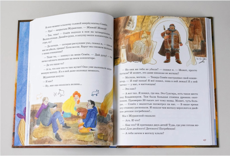 Авторы ненавязчиво знакомят детей с научными фактами из истории, палеонтологии и археологии. Читая книгу, можно узнать, как появился человек разумный, встретятся с человеком прямоходящим и неандертальцем. Проиллюстрировала книгу интересный художник и педагог из города Санкт-Петербурга Елена Смешливая. Каждая её работа — это не только иллюстрация, но и история.
