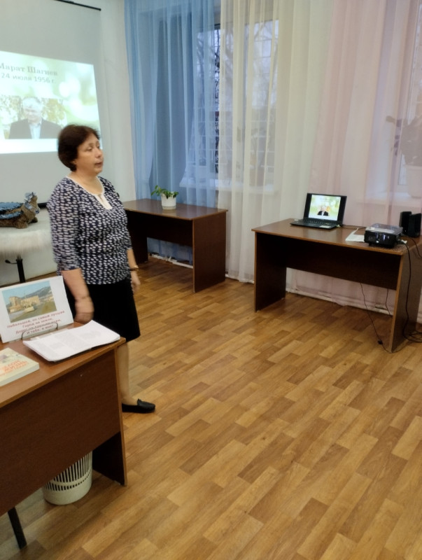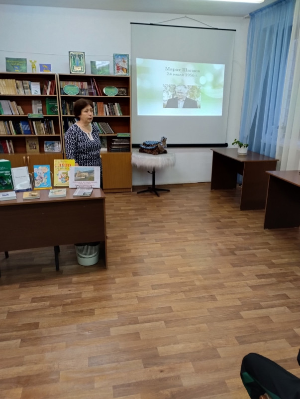 Заведующая филиалом Елена Смычек рассказала учащимся о поэтах родного города. Стихи Марата Шагиева, Александра Горного, Елены Ранневой, Людмилы Олифировой, Сергея Каратова, Бориса Гришая стали темой разговора.