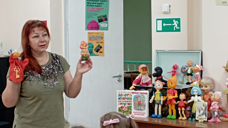 Хранительница музея, его вдохновитель и наш добрый друг Галина Алексеевна Дубровина рассказала всем собравшимся о том, каким образом появились эти все игрушки в Музее. Оказалось, что из всех героев произведения А.Н. Толстого нет только Карабаса-Барабаса. На вопрос: «Как вы думаете, почему?» прозвучал ответ: «Потому что он злой!». Галина Алексеевна разрешила всем ребятам подержать игрушки в руках, внимательно их рассмотреть и, конечно, сделать фото на память!