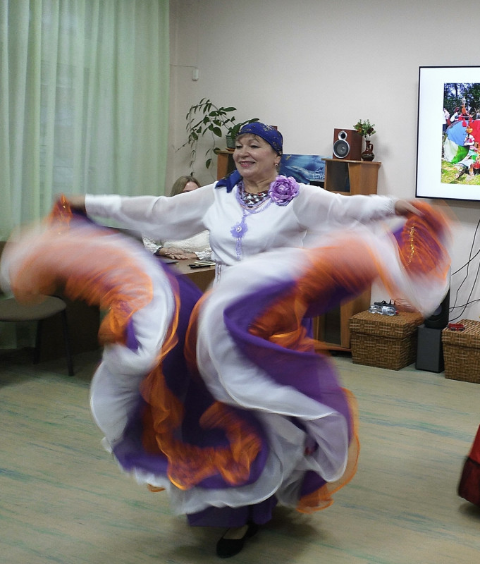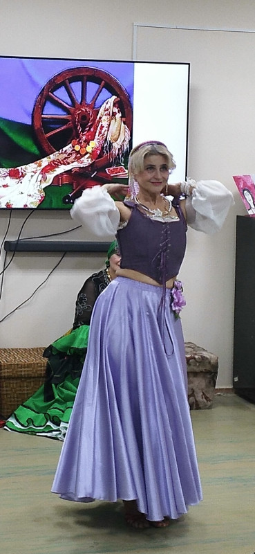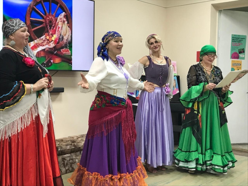 Финальным аккордом стало фееричное выступление творческой студии Елены Корман. Ансамбли «Ранори» (Любовь Кроливец, Варвара Полянских, Татьяна Савельева) и «Аврора» (Екатерина Соболева и Юлия Тумарова) буквально взорвали зал! Зажигательные танцы, проникновенные песни и даже таинственные гадания по руке – ни один зритель не остался равнодушным! Артисты заворожили публику своим талантом и неукротимой энергией, наполнив пространство звуками чарующей цыганской музыки!