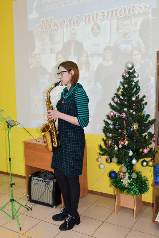 Литературные произведения чередовались прекрасным исполнением песен и музыки на разных инструментах: прозвучала песня «Верю я в любовь и доброту» в исполнении автора Дарьи Маныловой на укулеле, были исполнены музыкальные композиции: «История любви» композитор Френсис Лэй (саксофон, Анастасия Проскурякова), «Мой друг художник и поэт» композитор Константин Никольский и «Я закрываю глаза» композитор Игорь Крутой (фортепиано, Мария Вашкеева).