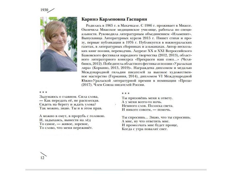Мария Владимировна Вашкеева: миасский поэт и прозаик, наставник «Школы поэтов» посвятила Каринэ стихи.