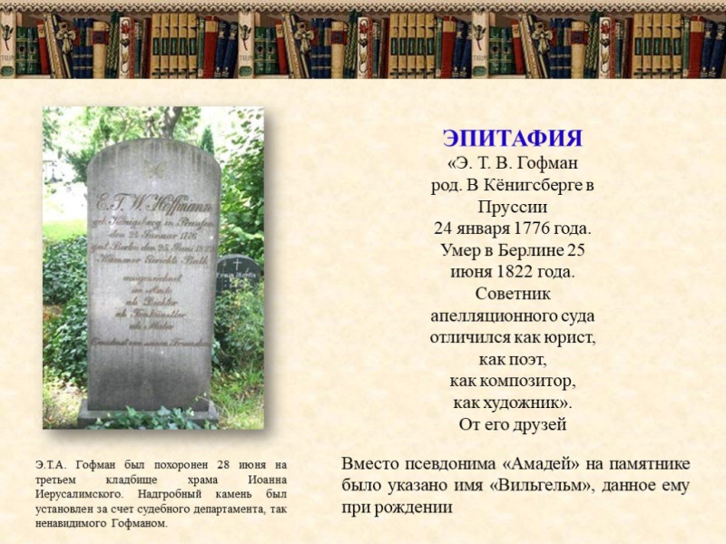 Эрнст Теодор Амадей Гофман – немецкий писатель-романтик, сказочник, композитор, художник.