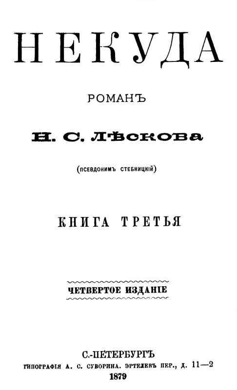 Тогда же в журнале «Библиотека для чтения» начал печататься роман «Некуда» (1864). Роману приписали антидемократические взгляды, что, по словам писателя, испортило всю его творческую жизнь на многие годы.