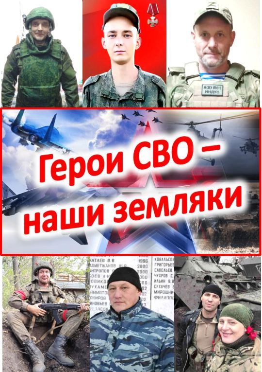 «Герои СВО — наши земляки» (о кавалерах ордена Мужества Н. Бирилло, Е. Лаптеве, А. Воронкове, К. Саутенко, Е. Можаеве, И. Насардинове, миасском снайпере Р. Батршине, воине-спортсмене Д. Статове и других).