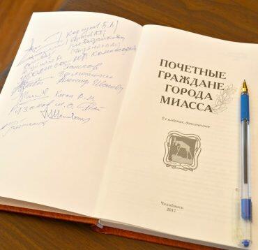 Первое издание сборника «Почетные граждане города Миасса» вышло в 2008 году тиражом 500 экземпляров. Книга была приурочена к 235-летию города и рассказывала о самых уважаемых и именитых гражданах Миасса. Второе издание пополнилось материалами о новых почетных миасцах, внесших огромный вклад в развитие города. Помощь в создании книги оказали АО «Государственный ракетный центр имени академика В. П. Макеева», автомобильный завод «Урал», АО «НПО электромеханики», компании «Миассмебель» и АМС-МЗМО.