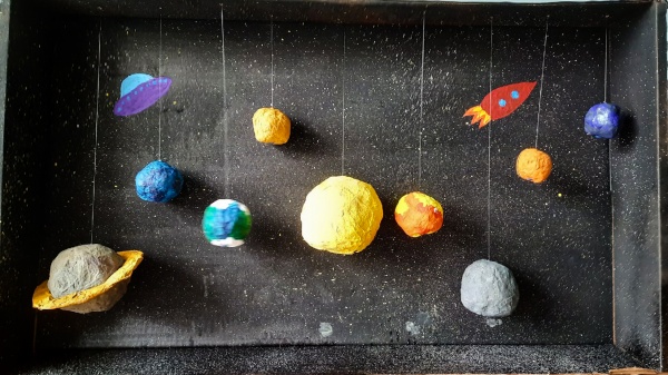 Дошкольники ответили на вопросы викторины, на скорость собрали космические пазлы и вместе с родителями и воспитателями сделали поделки для мини-музея «Космос».