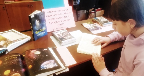Ребята познакомились с историей развития космонавтики, расширили свои знания о Вселенной, космических телах и явлениях. Библиотекарь Елена Метелева оформила книжную выставку «Знаете, каким он парнем был!». Не ней были представлены книги, рассказывающие о Вселенной, планетах, звёздах, галактиках, кометах.