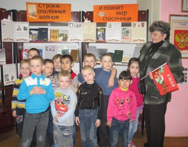 В конце мероприятия дети прослушали песни «Прадедушка» и «И всё о той весне», познакомились с книжными выставками «Поклонимся великим тем годам» и «Военная реликвия» и подарили библиотеке свои рисунки.