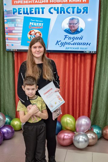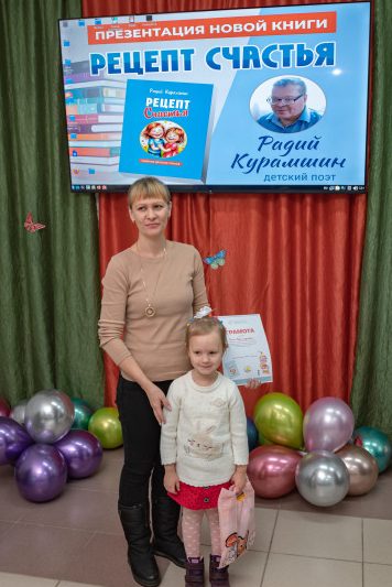 В конце встречи Анна Анатольевна продемонстрировала видео, на котором стихотворение Радия Курамшина «Рецепт счастья» читает Елизавета Максимова, давний друг поэта. Стихи Радия Курамшина удивительно точно передают краски и звучание этого мира. Невозможно не заметить его трепетное отношение к своим маленьким героям, которых он понимает так, как будто сам является малышом.