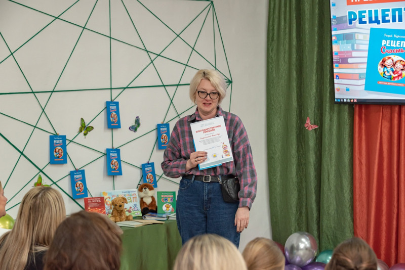 Слова признательности прозвучали в адрес тех, кто принимал непосредственное участие в создании этого прекрасного издания. В качестве признания их заслуг заместитель директора библиотечной системы Елена Рубцова вручила Благодарственные письма, а также значимые для каждого презенты– экземпляры новой книги «Рецепт счастья».