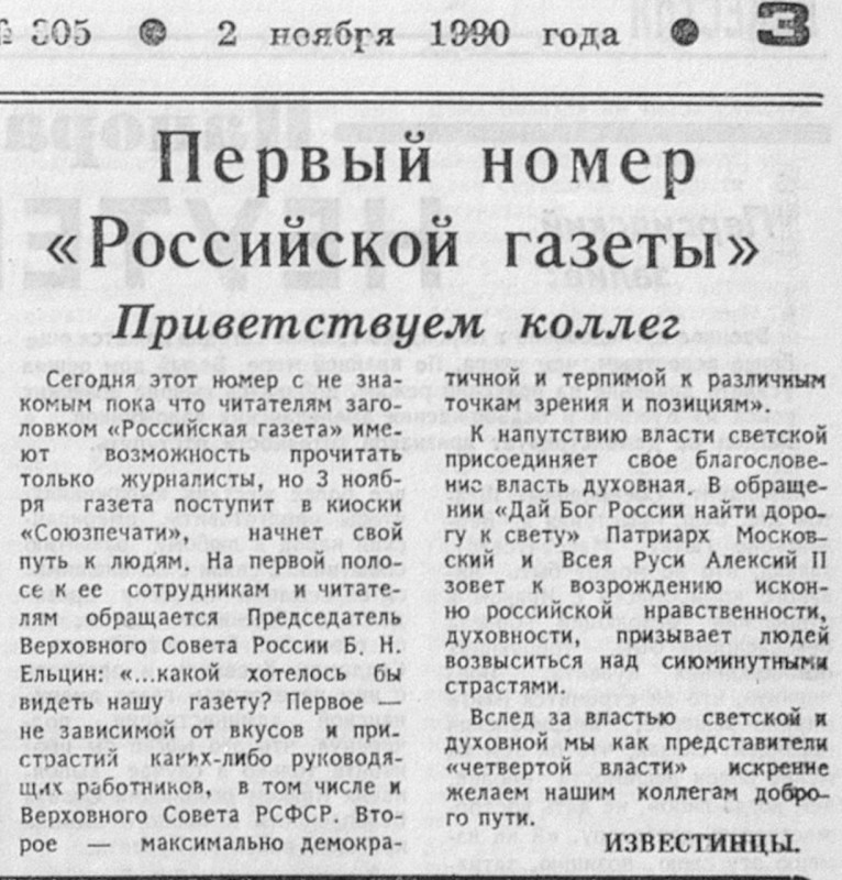 В ноябре этого года «Российская газета», известное российское издание, отмечает свой 35-летний юбилей.Именно в «Российской газете» впервые публикуются важнейшие законы, указы и постановления, определяющие жизнь страны.На ее страницах всегда: актуальные репортажи о событиях в столице и регионах, последние новости из мира спорта и культуры, эксклюзивные интервью с государственными деятелями и глубокие комментарии к официальным документам.