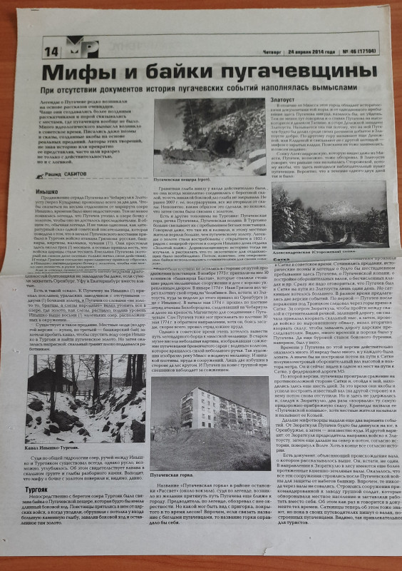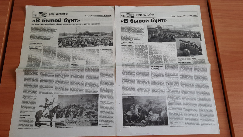 Библиотекарю Елене Фёдоровне Лукиной стало интересно, было ли это на самом деле. В своей библиотеке-филиале №4 она обратилась к фонду краеведческой литературы и нашла статьи на эту тему миасского исследователя Рашида Сабитова в сборниках «Истоки № 7 и № 8» (2014, 2015), изданные нашим краеведческим музеем. Подробные статьи этого же автора есть в газете «Миасский рабочий» № 20, 23 (2014), а также корреспондента Натальи Корчагиной в газете «Глагол» № 30 (2014). По прочитанной информации оказалось, что документальных доказательств присутствия самого Пугачёва в нашем городе не было. Но, исходя из официальных записей священника Владимира Аманацкого (1856), которые есть в краеведческом музее, пугачёвские атаманы сожгли и разграбили мельницу и плотину, построенные для миасского медеплавильного завода.