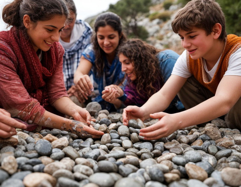 В Греции гости подбирают камни и желательно побольше. Крупные кладут на порог хозяина дома и желают богатства. Если больших булыжников не нашлось, греки берут самый маленький камешек и дарят со словами, чтобы беды хозяев были не тяжелее этого камушка.