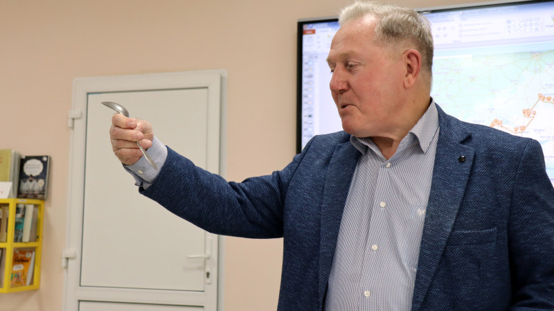 На встречу со школьниками Геннадий Федотович принес личные вещи отца: походную ложку, награды.