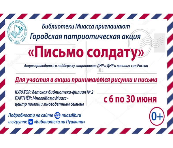 16 марта стартовала Городская патриотическая акция «Письмо солдату». Жители города Миасс поддержали своими рисунками и письмами, написанными от руки, тех, кто защищает Родину — действующих и отставных офицеров, рядовых, ветеранов. На эту акцию откликнулись многие неравнодушные люди. По просьбам жителей мы продолжаем Городскую патриотическую акцию «Письмо солдату», которая реализуется в рамках …